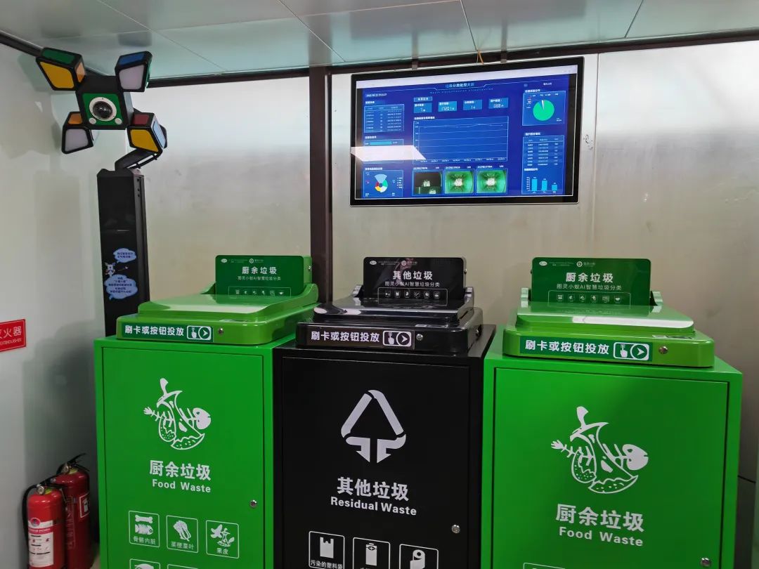 在垃圾投放点内、分类垃圾桶上方有一个电子屏,南京图灵研究院首席技术执行官曹彦斌介绍:“这个屏幕上可以看到每次投放行为的评分,分数小于100分说明投放存在问题。这些得分综合形成投递质量的分布曲线,通过此曲线可以了解分类效果。目前设备的识别准确率能达到95%左右。”