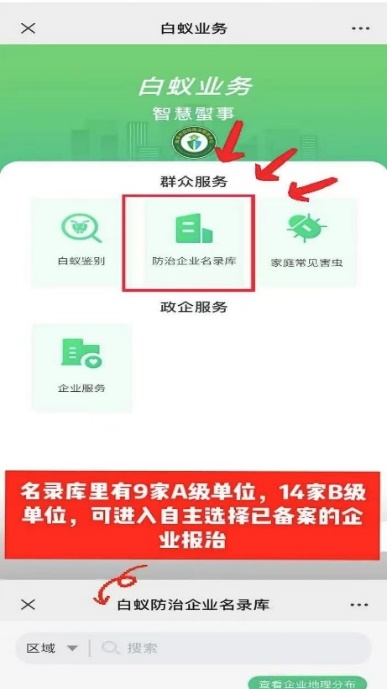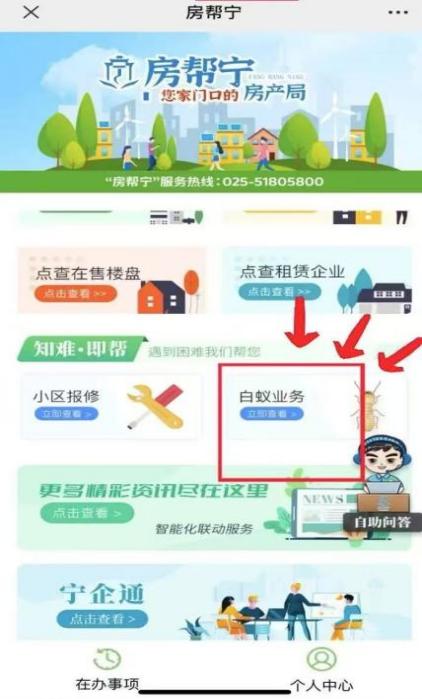 白蚁防治是一项专业性很强的工作,请勿自行喷洒普通杀虫剂,惊扰白蚁导致转移扩散。如发现白蚁,可关注微信公众号“南京房产微政务”,点击页面底部“房帮宁”按钮通过“白蚁业务”模块查询“防治企业名录库”,自主选择企业报治。