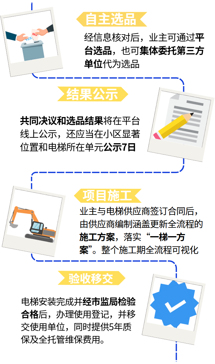我市电梯更新一体化服务平台,是全国首个专门聚焦住宅老旧电梯更新的线上服务平台,成为破解电梯更新“流程繁琐、沟通不畅、信息不透明”等难题的“利器”。平台创新采用“淘宝+投票”亲民模式,紧扣“政府引导、居民主导、政策扶持、阳光透明”核心,彻底打通老旧电梯更新的全流程服务链条,实现居民意见采集、国补申报、维修资金申请、施工安装、验收申报等全线上全流程功能服务,为更梯居民提供快速、便捷的服务通道,提升全流程线上办理效率和群众满意度。