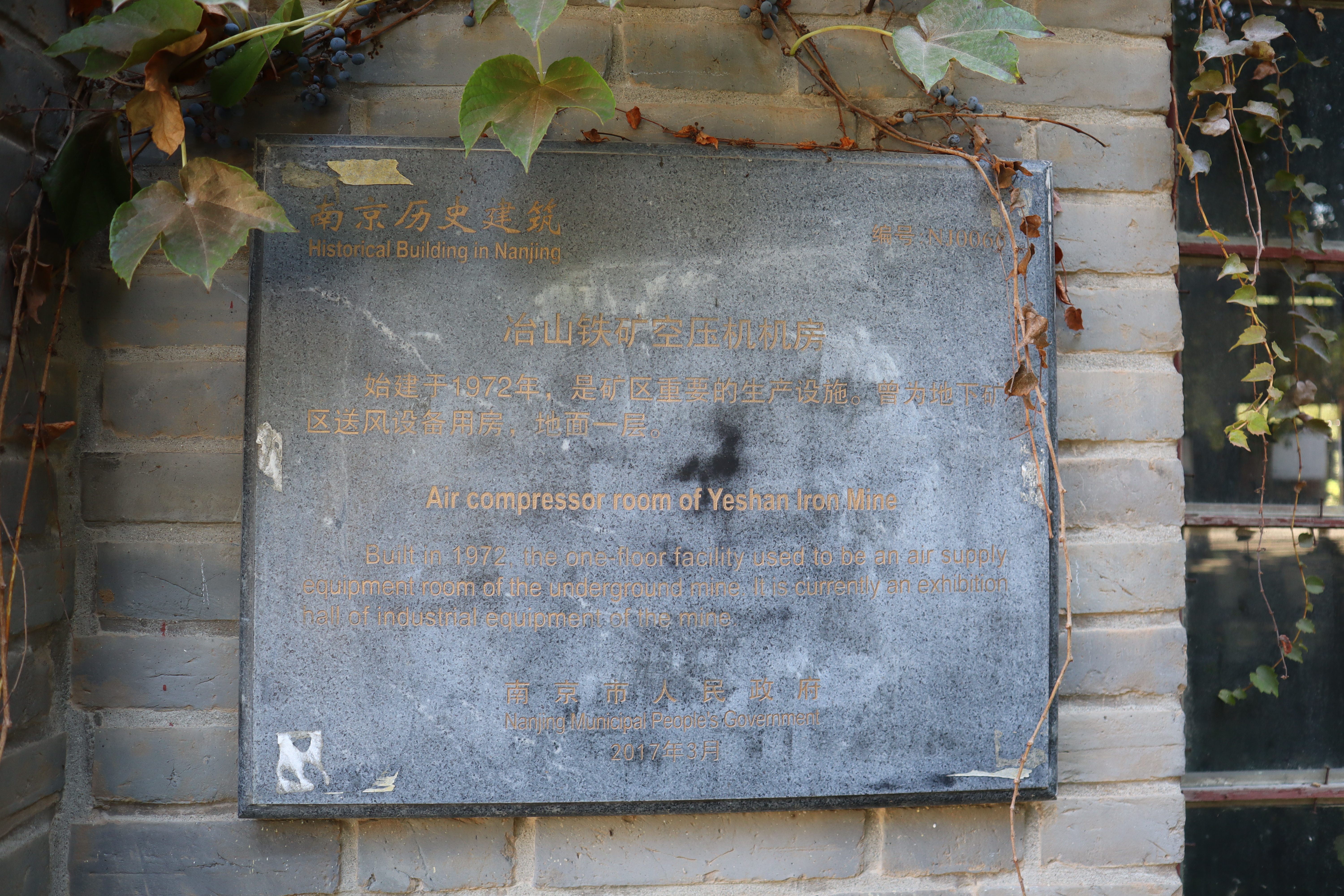 Built in 1972, the one-floor facility used to be an air supply equipment room of the underground mine. It is currently an exhibition hall of industrial equipment of the mine.