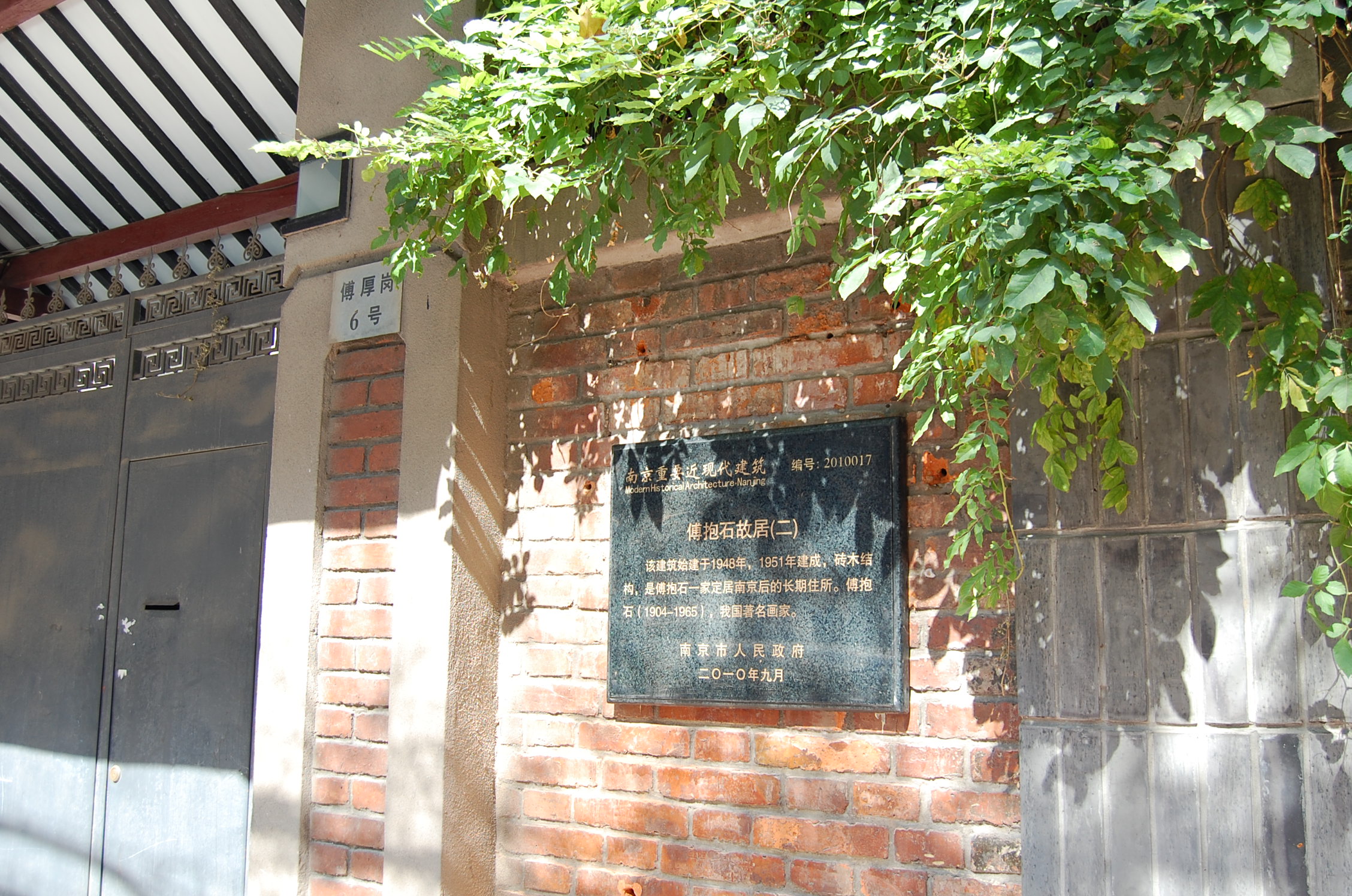 该建筑始建于1948年,1951年建成,砖木结构,是傅抱石一家定居南京后的长期住所。傅抱石(1904-1965),我国著名画家。