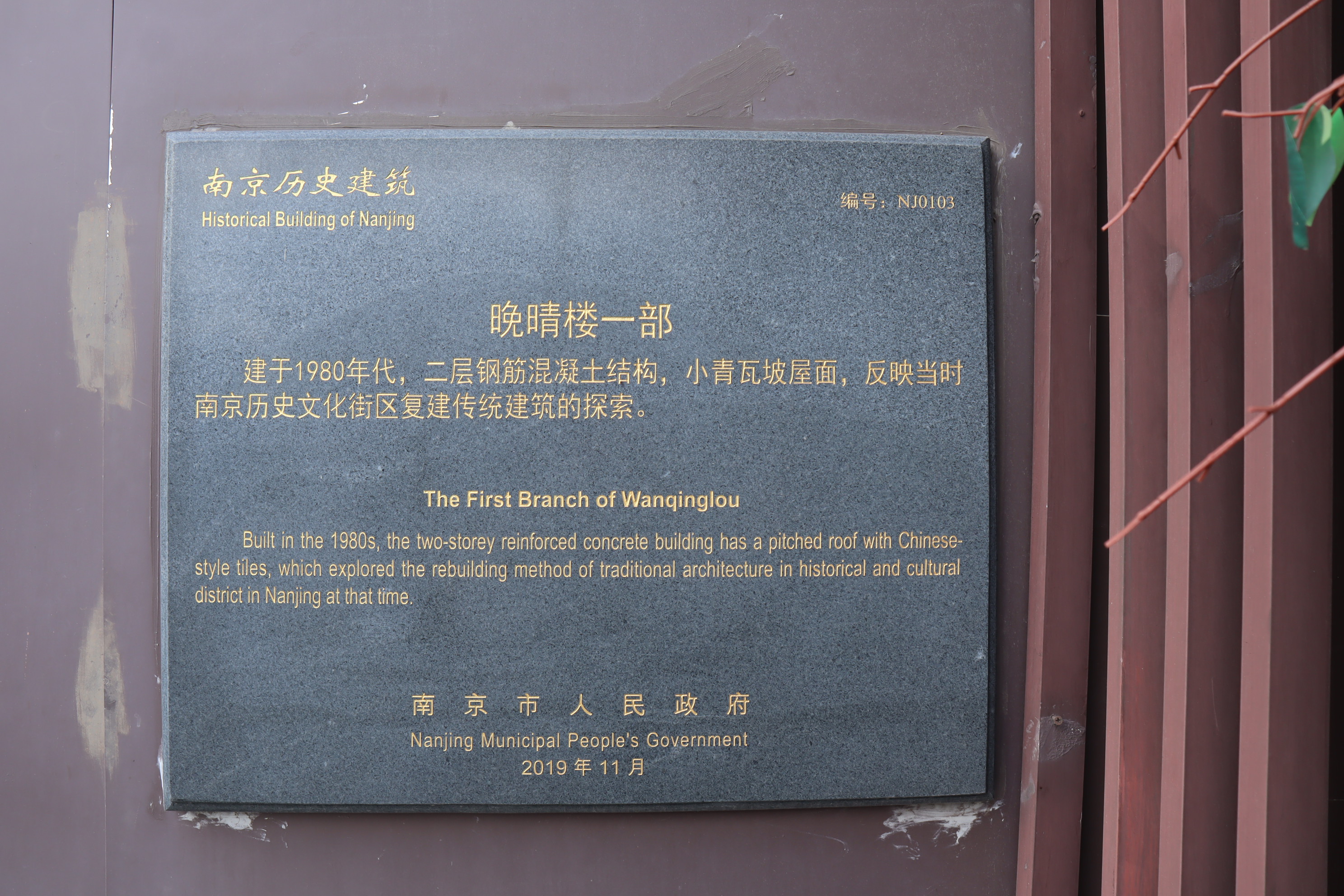 建于1980年代,二层钢筋混凝土结构,小青瓦坡屋面,反映当时南京历史文化街区复建传统建筑的探索。