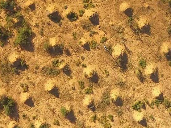 在巴西东北部的森林里,研究人员发现了约2亿个、数米高由白蚁建造的蚁丘,非常壮观。这些蚁丘呈圆锥形,高度从2米到4米不等,底部直径可达9米。据研究,这些蚁丘有近4000年历史,且现在仍有白蚁在其中活动。
