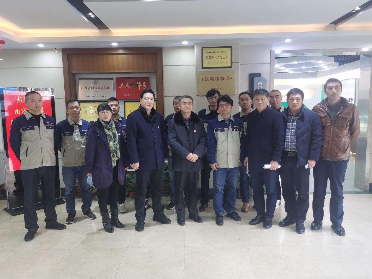 常银生介绍了“胡兆祥”劳模工匠创新工作室的基本情况和创建背景,市城建工会主席吴鉴和市房产局一级调研员汪立言对中心获此殊荣表示祝贺,对中心全体职工多年来对创建工作的付出和努力表示肯定。吴鉴主席强调南京市劳模工匠创新工作室这一殊荣的来之不易,希望继续保持干劲,发挥好主力军作用,局分管领导汪立言也在发言中提出,希望工作室能在接下来的日子里,继续弘扬劳模精神、工匠精神,做好“传、帮、带”工作,加强业务深度融合,促进行业健康发展。随后,汪立言、吴鉴、吴永康、常银生共同为南京市劳模工匠创新工作室揭牌,并实地参观了工作室,与全体参与人员合影留念。