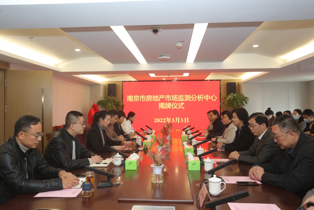 3月3日上午,南京市房地产市场监测分析中心揭牌仪式在春风大厦22楼大会议室举行,市住房保障和房产局党组书记、局长谈健、副局长倪兴龙、蒋海琴、一级调研员李华、办公室主任吕明辉、市场监管处处长夏军、副处长司成兰、于筱慧参加揭牌仪式。