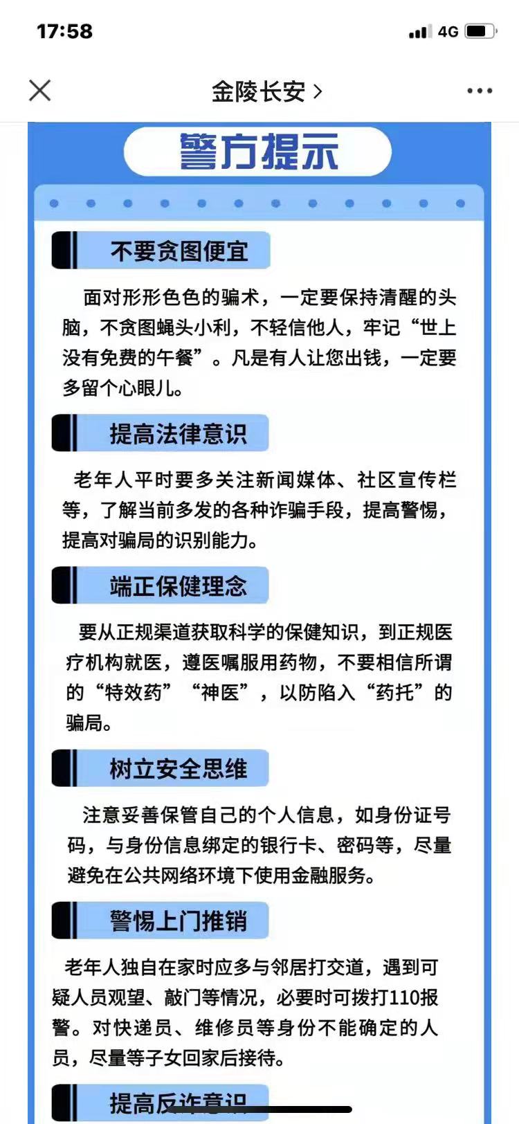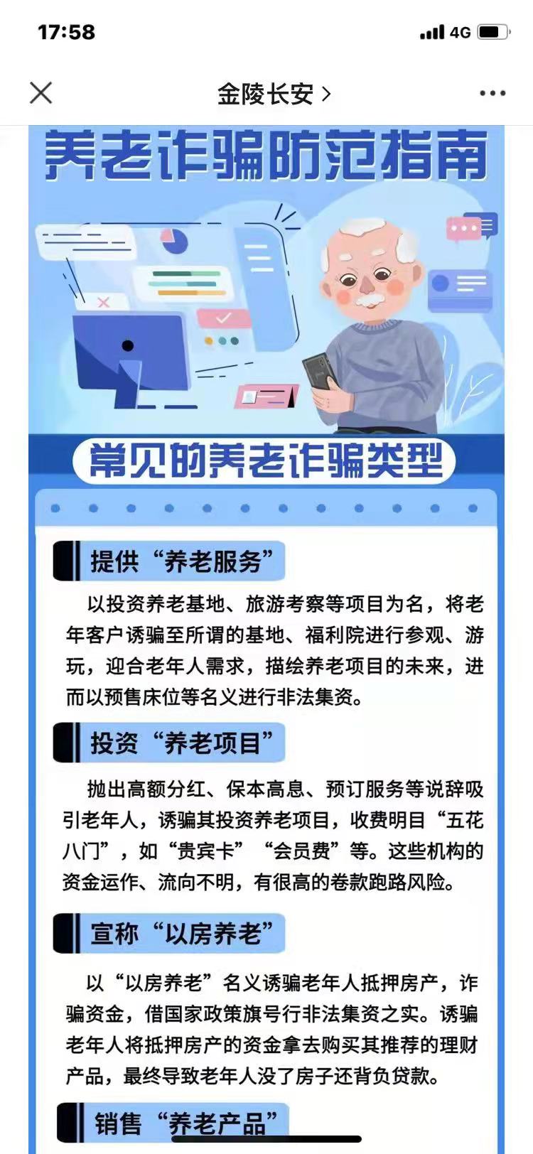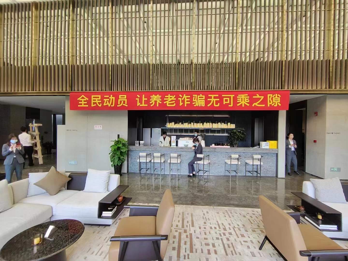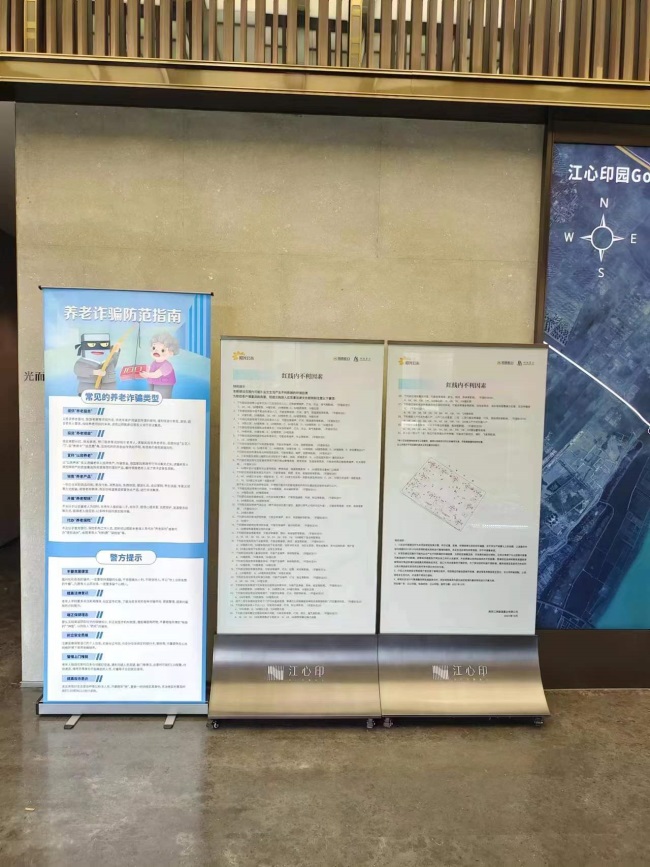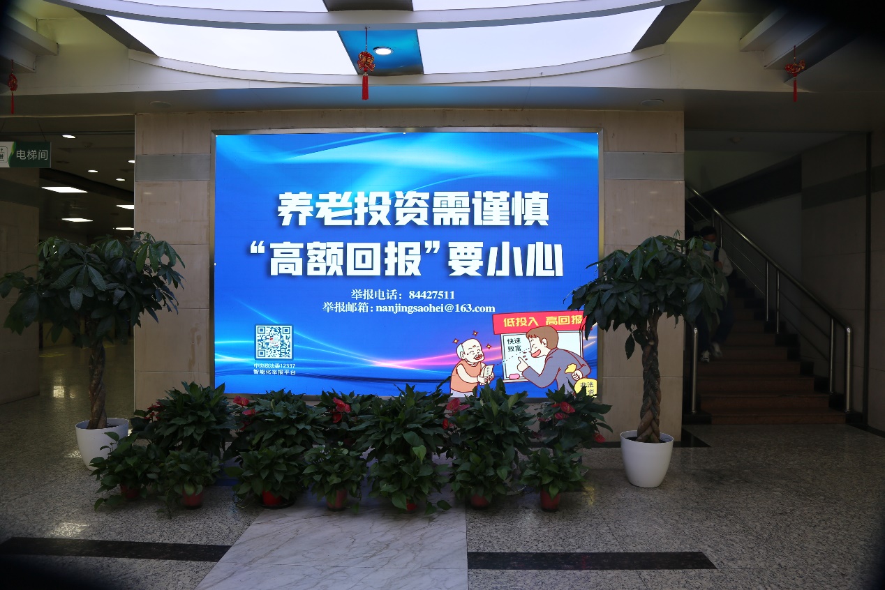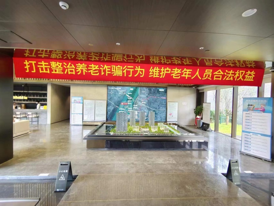 维护老年人员合法权益”等11条推荐防诈反诈标语、“养老防诈指南”、公布南京市打击整治养老诈骗专项行动举报路径,并在全市各房产交易登记大厅、开发企业售楼现场通过电子显示屏、公共宣传栏、X展架、易拉宝等形式张贴和宣传,营造防诈反诈氛围。