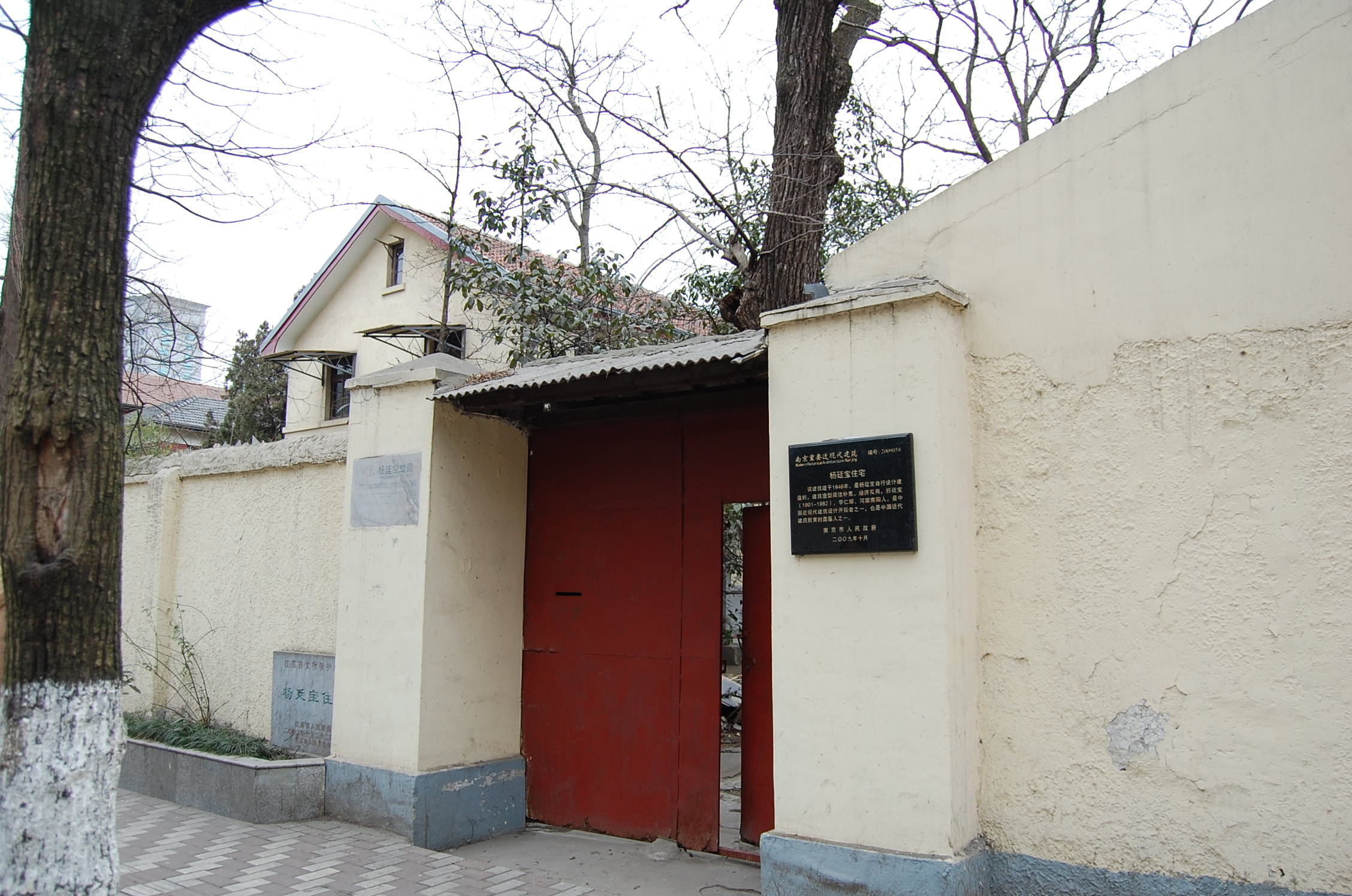 该建筑建于1946年,是杨廷宝自行设计建造的,建筑造型简洁朴素、经济实用。杨廷宝(1901-1982),字仁辉,河南南阳人,是中国近现代建筑设计开拓者之一,也是中国近代建筑教育的奠基人之一。